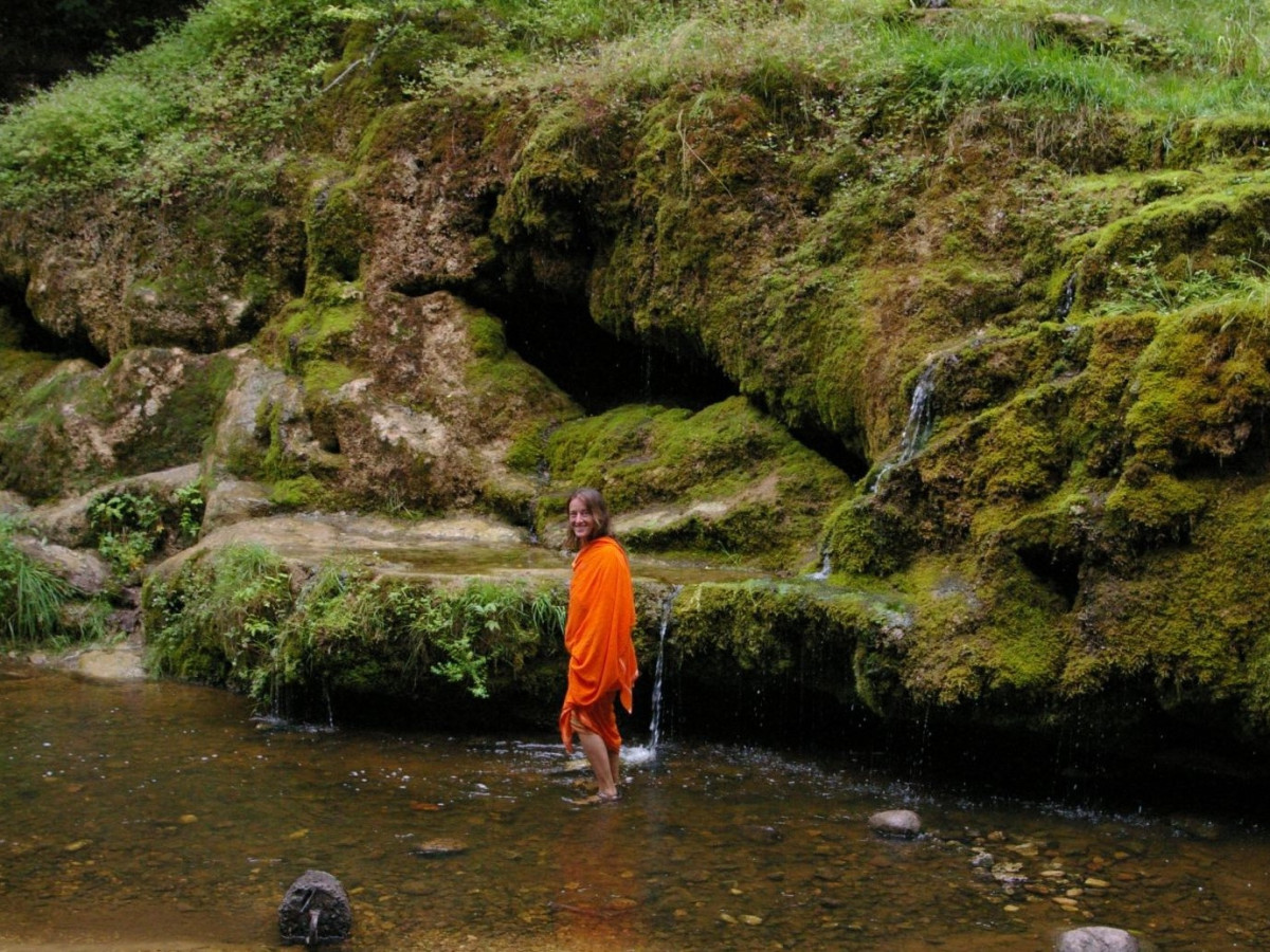 Gūtmaņa ala bija viena no tām vietām, kuru Mangalanandai bija iespēja redzēt un viņai ļoti patika šī vieta kā izcili piemērota meditācijai – „Austrumu ekspozīcija, absolūti tīrs, tekošs ūdens, ko gan jums vēl vairāk vajag, un tur taču ir izcili meditācijas dzīvokļi blakus esošajās mazajās grotās ”, bet par Emīla bļodakmens apkārtni viņa bilda, ka tā būtu lieliska vieta ašramam, lai gan Latvija ir tiešām pārpilna ar izcilām vietām ašramiem .